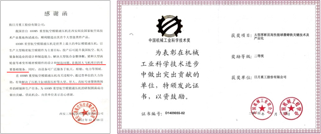 In the process of the 400MN heavy aviation die forging hydraulic press, through the strong cooperation of the high grade ductile iron casting aid, we effectively solved the development and production tasks of large, thick and parts such as the spherical press rod of the master cylinder of the press, and contributed to the successful development of the 400MV heavy aviation die maximum press.